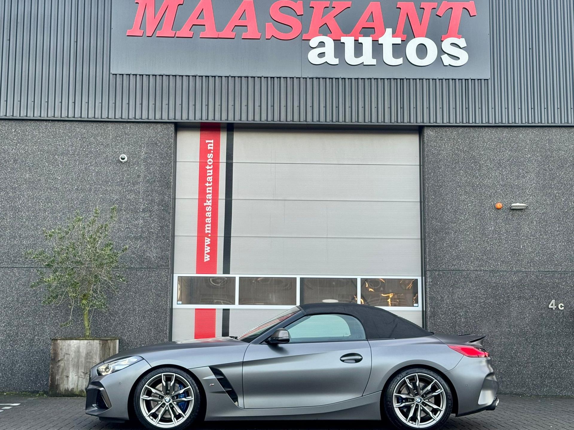 Een top of the range Z4 Roadster M40i in een zeer smaakvolle zogenaamde "droom kleurstelling" van Frozen grey (matgrijs) wit tegenover Vernasca zwart leder interieur. Voorzien van de ultieme M40 3.0 liter 6-cilinder lijn motorisatie goed voor 340pk. Een exemplaar met vele prettige en onderscheidende opties: Hud display , Alarm systeem , Harman Kardon , Camera achter , Verwarmd stuurwiel , Comfort access , Adaptive cruise , 19" velgen 800 bi color , Shadowline , Dab tuner en nog veel meer... Tevens voorzien van: Ac Schnitzer achterspoiler , Eibach Pro Kit veren , Speciale luchtinlaat en charge pijpen van G-power , Akrapovic uitlaat systeem , teller upgrade naar 330kmh in plaats van 260kmh alsmede een software motor upgrade naar 400pk! Alles gedaan door professionals en met de juiste documentatie! Een fantastisch exemplaar van het jaar 2020 met slechts 33600km gereden. Echt iets voor iemand waar standaard niet goed genoeg is. Nu bij Maaskant Auto's.
