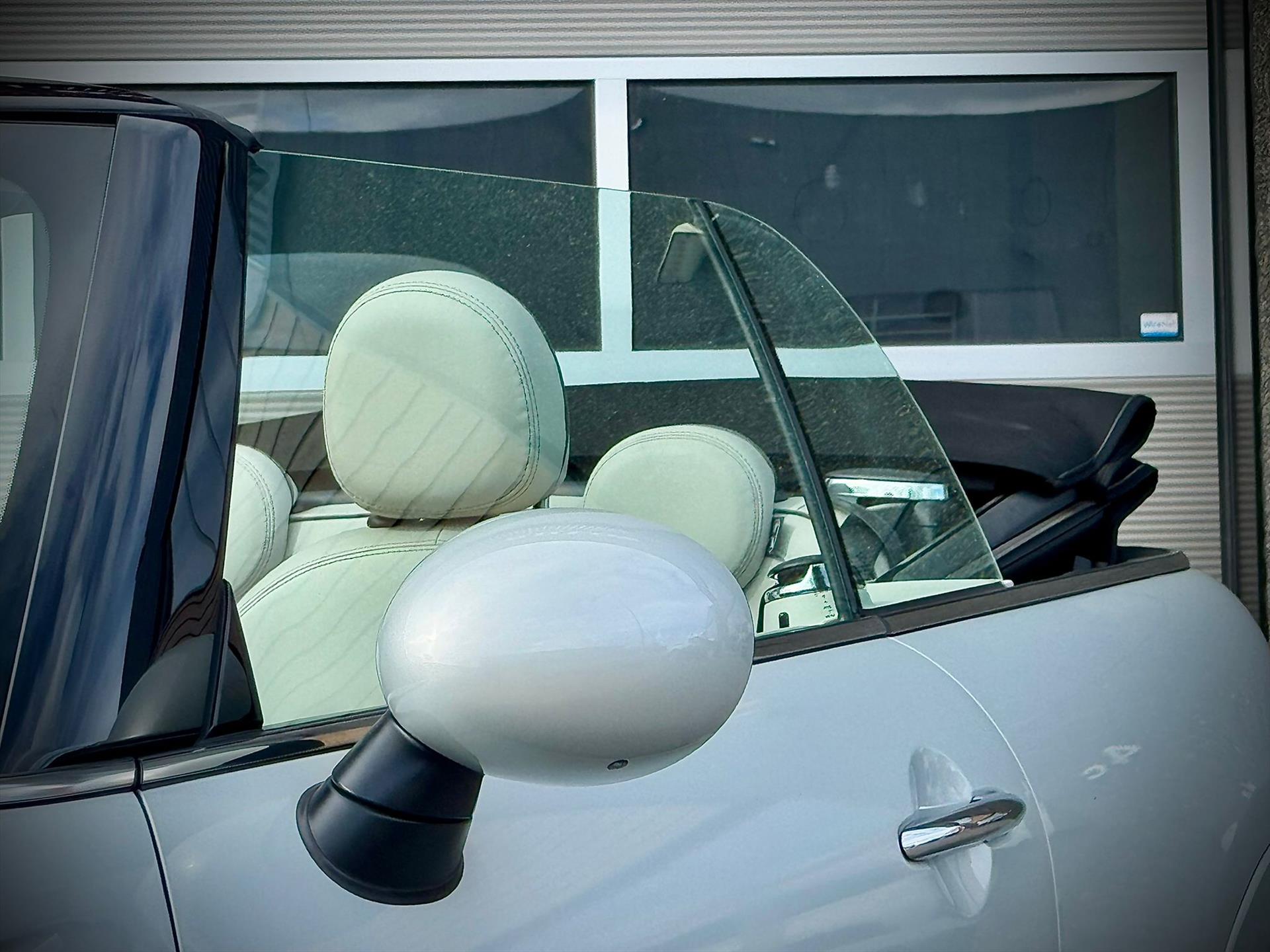 Bent u opzoek naar een Mini Cooper S Cabrio maar dan een exemplaar met een echt unieke specificatie , dan hebben wij van Maaskant Auto's nu een wel heel bijzonder exemplaar voor u staan! Wat een gaaf & fris exemplaar is dit... Hier wordt toch iedere (jonge) dame vrolijk van? Te beginnen is deze handgeschakelde Cooper S Cabrio Chili uitgevoerd in White silver (een waanzinnige kleur) tegenover contrasterend Satelite grijs leder interieur! Qua opties ook anders als de doorsnee , met een aantal bijzondere opties: Hud display , Adaptive cruise control , Stoelverwarming , Elektrisch inklapbare buitenspiegels , Voorruit verwarming , Harman Kardon , 18" Mini Yours vanity velgen , Parkeersensoren , Parkeer camera achter , Prof navi , Bluetooth , Armsteun , John Cooper Works stuurwiel , Chromeline interieur , Chromeline exterieur en nog meer... Kortom alle plaatsen waar een knopje kan zitten is bezet. Tevens is er een origineel windscherm present. Naast de zeer fraaie staat rijdt dit exemplaar mede vanwege het perfecte onderhoud fantastisch!