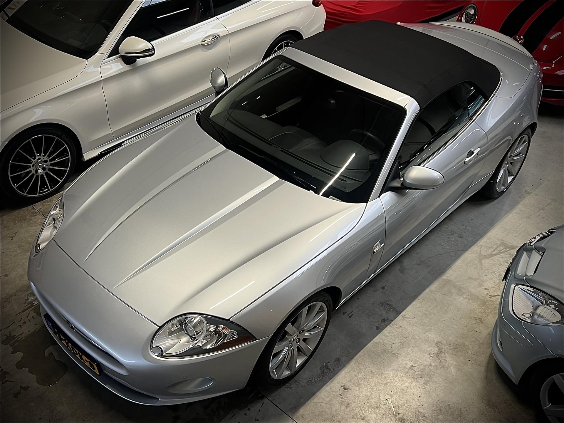 Een van origine Duits geleverd exemplaar. In 2009 door een liefhebber naar Nederland gehaald en in ons land geregistreerd met kenteken 88-KDK-8. Dat de auto grotendeels inpandig gestald is kun je zien aan deze unieke auto. De eigenaar daarna (nummer 3) kocht de auto bij Jaguar dealer Rac (Jaguar pre owned) te Rotterdam , waar ook het onderhoud werd gepleegd (waarvan deels documentatie aanwezig). De auto bleef correct onderhouden. De eigenaar daarna kocht de Xk aan in 2021 wederom bij Jaguar dealer Rac (Jaguar pre owned). Het onderhoud daarna is bij een Jaguar specialist verricht te Ochten. Wij hebben de auto zelf in ons bezit gehad en daarna verkocht aan een liefhebber die er af en toe een weekend ritje mee heeft gereden. We verkregen deze Xk nu wegens inruil omdat meneer bij ons een upgrade heeft gemaakt naar wederom een Jaguar. Recent geleden nog service uitgevoerd door niemand minder dan officieel Jaguar service punt Auto Ventura te Goes bij 99451km. Deze Xk Convertible staat geheel rijklaar op u te wachten en zal u op geen enkel front teleurstellen!