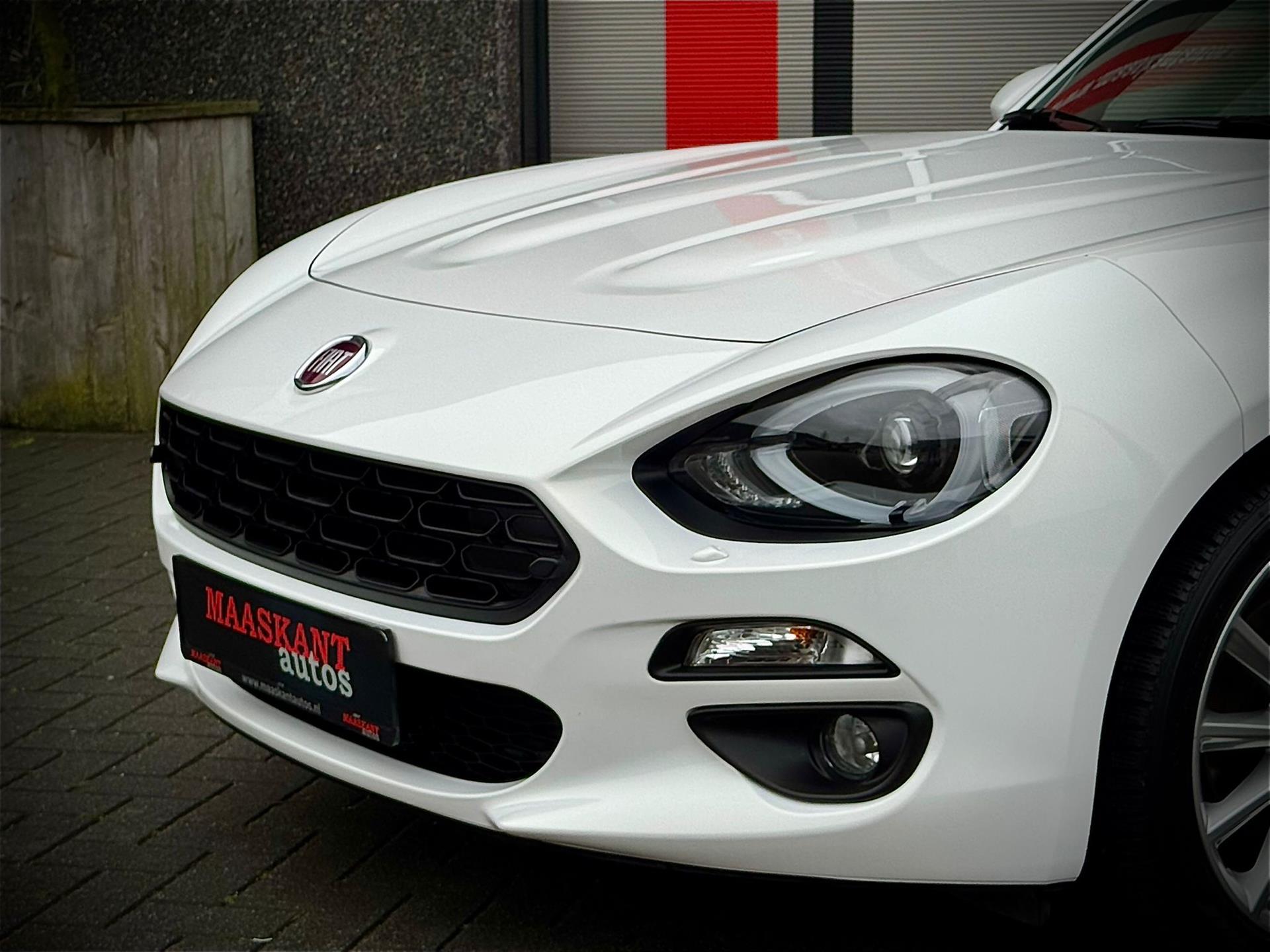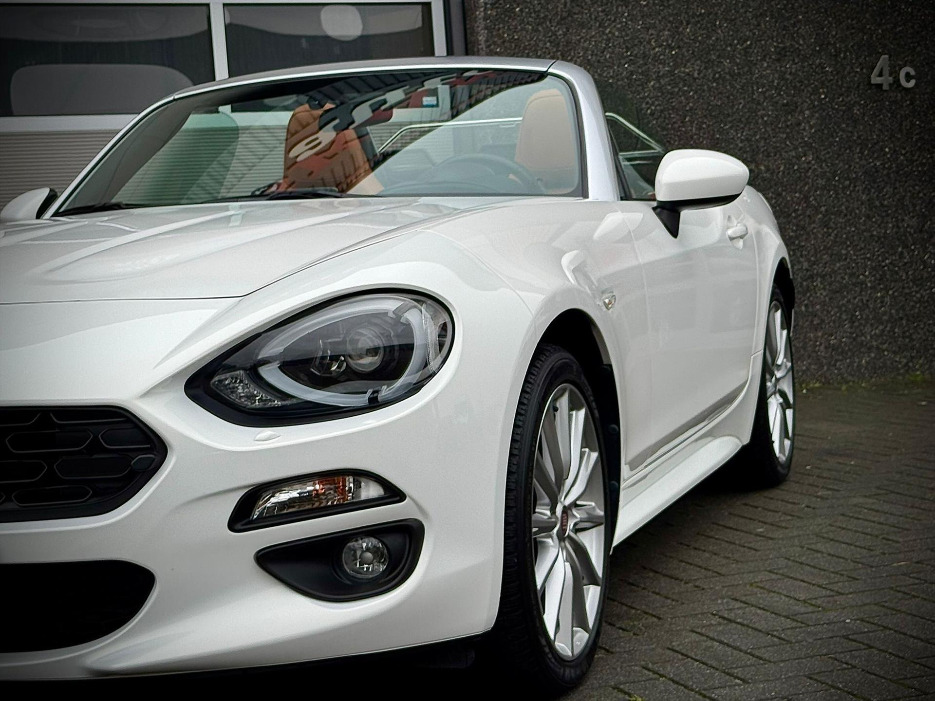 Wij zijn steeds meer enthousiast van de Fiat 124 Spider , natuurlijk wel als die zijn perfecte jasje aan heeft! Bent u opzoek naar een onderscheidende Fiat 124 Spider? Wij presenteren u een prachtig door ons geselecteerd uit Duitsland afkomstig exemplaar uit het jaar 2018 in een kleurstelling om vrolijk van te worden! Uitgevoerd in Bianco Pearl tegenover cognac leder interieur , naar onze mening de beste kleur combinatie op deze Fiat 124 Spider. Het betreft de luxere Lusso uitvoering met: Climate control , Camera achter ,17-inch lichtmetaal met all season banden , Mistlampen en Chroomkleur voorruitomlijsting. Tevens voorzien van chroom kofferrek en voor een sportiever geluid voorzien van Ragazzon uitlaat systeem. Een liefhebbers auto met slechts 22340km gereden in een staat waar u vrolijk van wordt!