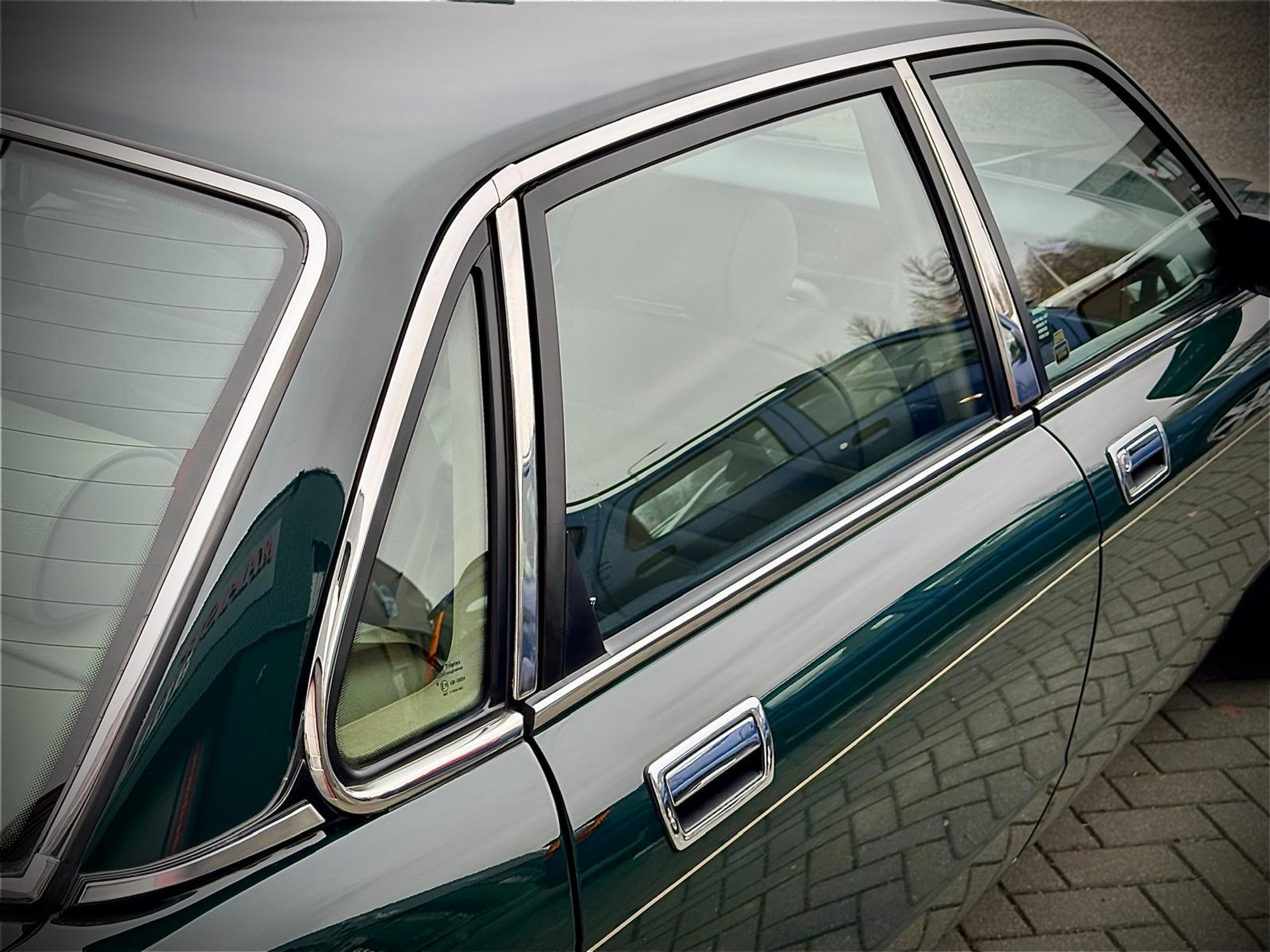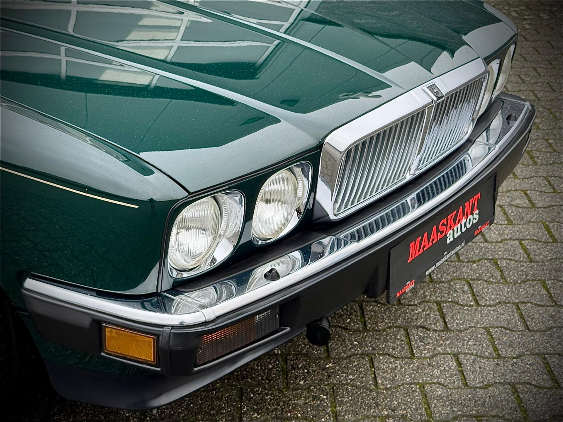 Een auto die de tand des tijds prima doorstaan heeft. Geen nieuwstaat maar een zeer goede echte staat zonder kant tekeningen. De auto staat voor een groot gedeelte nog in originele lak (bijzonder voor een Engelse auto uit dit tijdperk). Wij hebben optisch de auto laten detailleren waardoor ze een mooie diepe glans heeft en deze is beschermd met glascoating en dit geeft een prachtig voorkomen! Al het glas en lijsten zijn nog zeer netjes en origineel. Koplampsproeiers zijn tevens present (die ontbreken vaak). De achterlichten zijn ook nog netjes en zonder scheuren. Wij hebben de unieke Kiwi velgen laten coaten voor de puntjes op de i met daaromheen nieuwe banden. Het chroomwerk verkeert in algeheel nette staat (ook dat zien we vaak anders op de Xj40 en kan ter vervanging een kostbare aangelegenheid zijn). De onderzijde is nog geheel origineel en vanaf nieuw in roest preventie! Dus geen dichtgesmeerde zaken! Zelden zagen we een Xj40 die er zo correct en origineel uitzag. De motorruimte is geheel gedetailleerd tot in detail en ziet er uit om door een ringetje te halen. De kofferbak oogt netjes , roestvrij en is compleet met orgineel reservewiel , krik en natuurlijk een toolset is present! Het interieur oogt ultiem! Ongelooflijk hoe goed het interieur nog is. Het hangende hemeltje werd recent aangepakt , ook hier geen opmerkingen. Het houtwerk , vaak een bekend probleem is nog origineel en zeer netjes. Kortom een fraaie Xj40 zoals je ze nog zelden ziet. Bij binnenkomst hebben wij de Jaguar laten preparen door niemand minder dan Classic Paradise te Nederhemert. Inzichtelijk in foto reportage wat er recent gedaan is. Deze Xj40 staat geheel geprepareerd klaar.