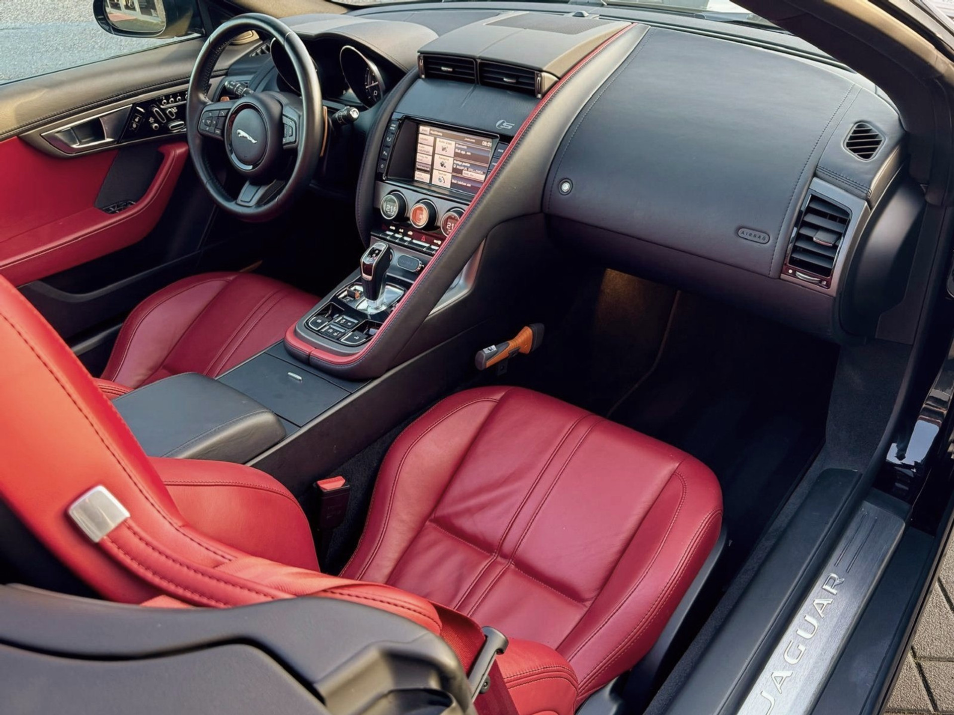 Wij presenteren u een origineel Nederlands geleverde Jaguar F-Type Convertible "S" met de beminde 3.0 V6 Supercharged motor , in deze uitvoering goed voor maar liefst 380pk en de ultieme soundtrack! U bent al een tijdje opzoek naar een F-Type in uitzonderlijk nette staat? Wij presenteren een uniek exemplaar in de kleurstelling van Ultimate black in combinatie met Red zone interieur! Dit exemplaar moet u beslist komen bekijken...