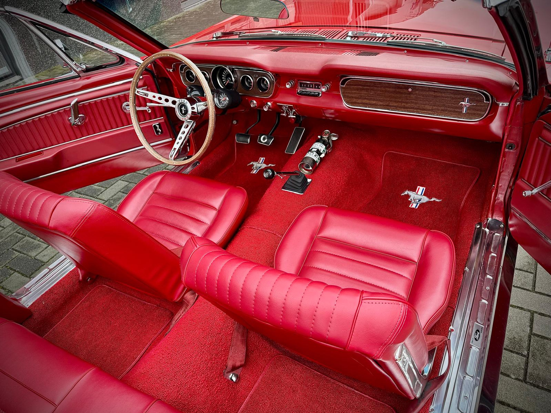 Zeer bijzonder icoon , deze Ford Mustang GT Cabriolet van bouwjaar 1965 in authentieke en periode getrouwe staat met eigentijdse patina. Dit betreft een zeer unieke Mustang met 289 V8 K-code motor met maarliefst 271pk gekoppeld aan een 4-bak handgeschakelde transmissie. Uitgevoerd in waanzinnige kleurstelling van: Rood exterieur , Rood interieur en Witte softtop. In technisch zeer goede , betrouwbare conditie. Zonder achterstallig heden. Recent geleden voorzien van nieuwe draagarmen. De uitrusting omvat: Gt versie , Vinyl interieur , Houten stuurwiel , Veiligheidsgordels , Rally pack (toerenteller en klok) , Radio met antenne , Getinte ramen , Linker buitenspiegel , Chromen koplampringen , Handmatig bedienbare softtop met persenning present , Banden met rode streep , Edelbrock inlaatspruitstuk , Holley carburateur , Open luchtfilter en meer...