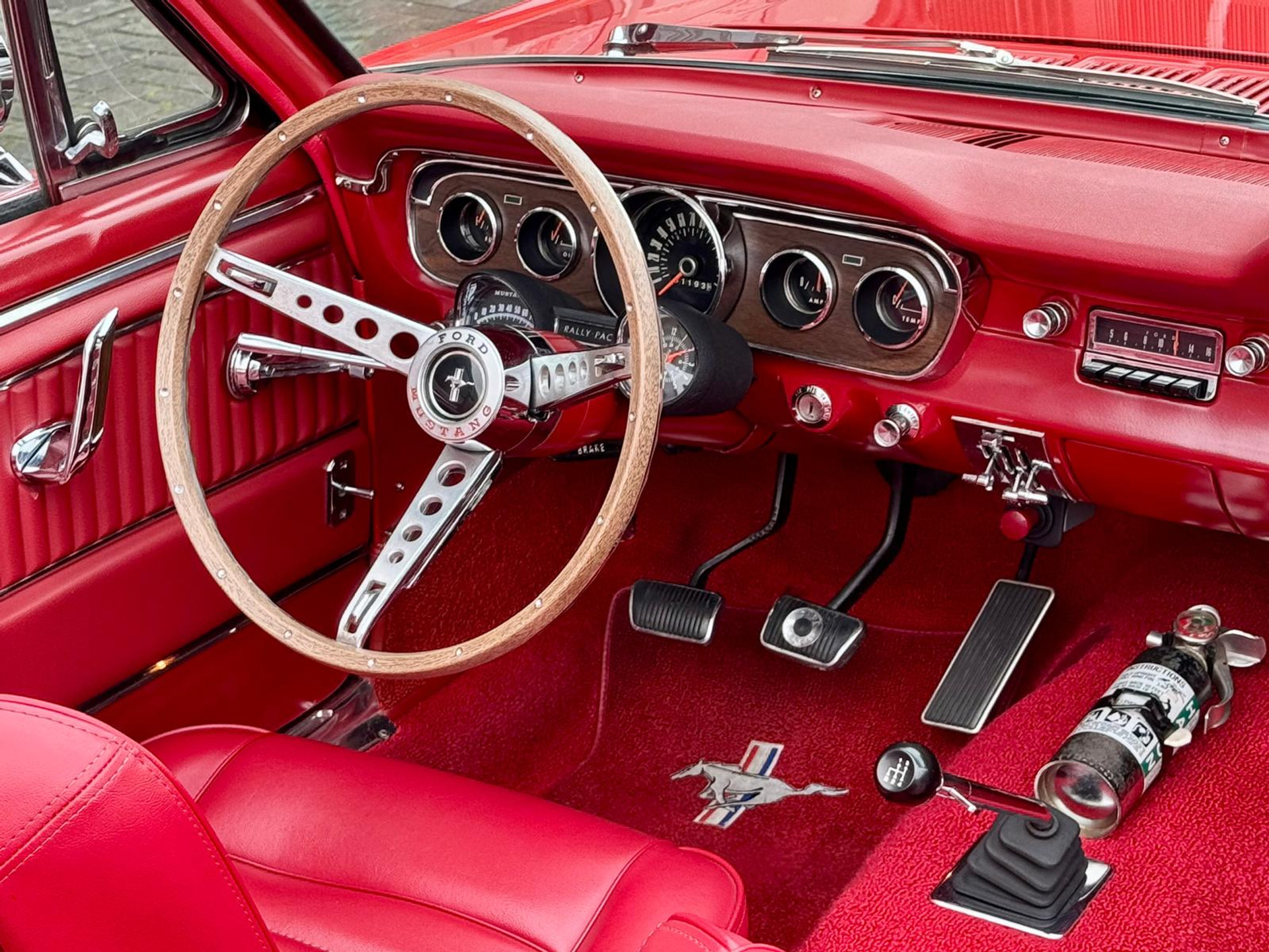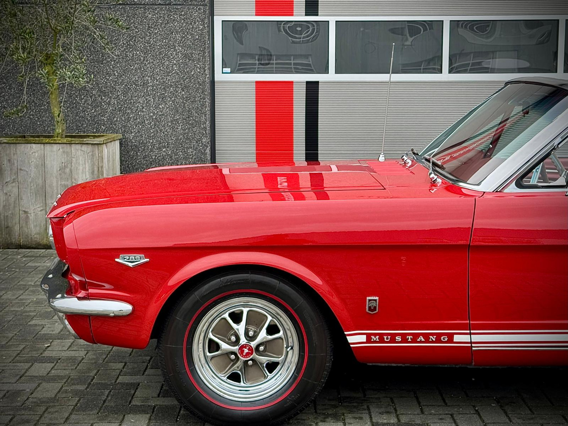 Zeer bijzonder icoon , deze Ford Mustang GT van bouwjaar 1965 in authentieke en periode getrouwe staat met eigentijdse patina. De oorsprong van deze auto was ooit een K-code Coupé dit betreft een Cabriolet conversie met authentieke details. Zeer unieke Mustang met 289 V8 K-code motor met maarliefst 271pk gekoppeld aan een 4-bak handgeschakelde transmissie. Uitgevoerd in waanzinnige kleurstelling van: Rood exterieur , rood "pony" interieur en Witte softtop. In technisch zeer goede , betrouwbare conditie. Zonder achterstallig heden. Recent geleden voorzien van nieuwe draagarmen. De uitrusting omvat: Gt versie , Vinyl interieur , Houten stuurwiel , Veiligheidsgordels , Rally pack (toerenteller en klok) , Radio met antenne , Getinte ramen , Linker buitenspiegel , Chromen koplampringen , Handmatig bedienbare softtop met persenning present , Banden met rode streep , Edelbrock inlaatspruitstuk , Holley carburateur , Open luchtfilter en meer...