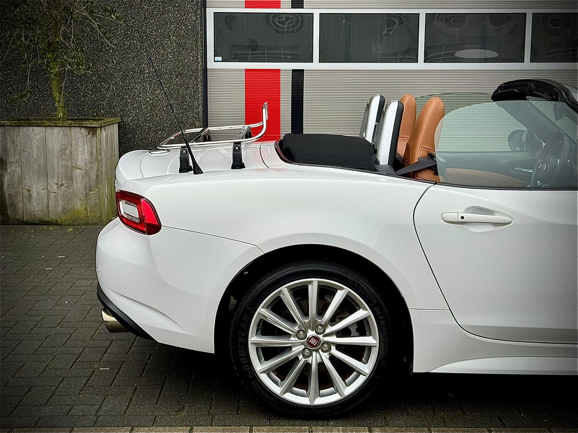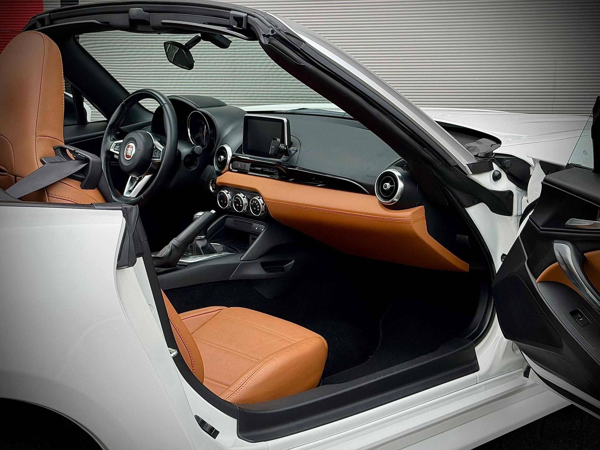 Wij zijn steeds meer enthousiast van de Fiat 124 Spider , natuurlijk wel als die zijn perfecte jasje aan heeft! Bent u opzoek naar een onderscheidende Fiat 124 Spider? Wij presenteren u een prachtig door ons geselecteerd uit Duitsland afkomstig exemplaar uit het jaar 2018 in een kleurstelling om vrolijk van te worden! Uitgevoerd in Bianco Pearl tegenover cognac leder interieur , naar onze mening de beste kleur combinatie op deze Fiat 124 Spider. Het betreft de luxere Lusso uitvoering met: Climate control , Camera achter ,17-inch lichtmetaal met all season banden , Mistlampen en Chroomkleur voorruitomlijsting. Tevens voorzien van chroom kofferrek en voor een sportiever geluid voorzien van Ragazzon uitlaat systeem. Een liefhebbers auto met slechts 22340km gereden in een staat waar u vrolijk van wordt!