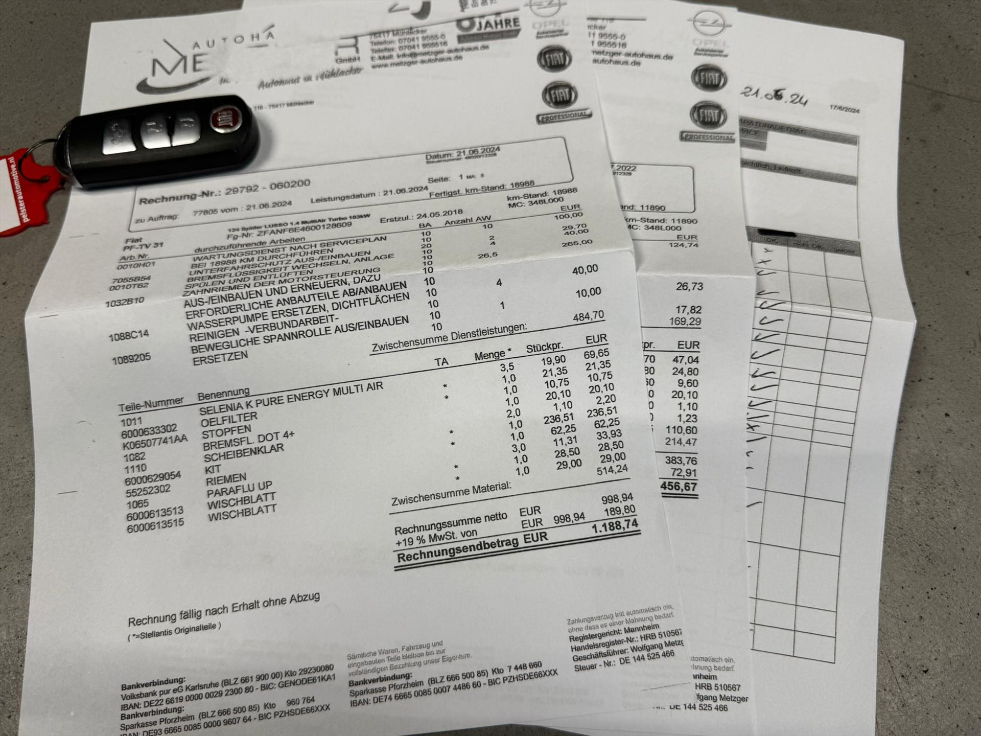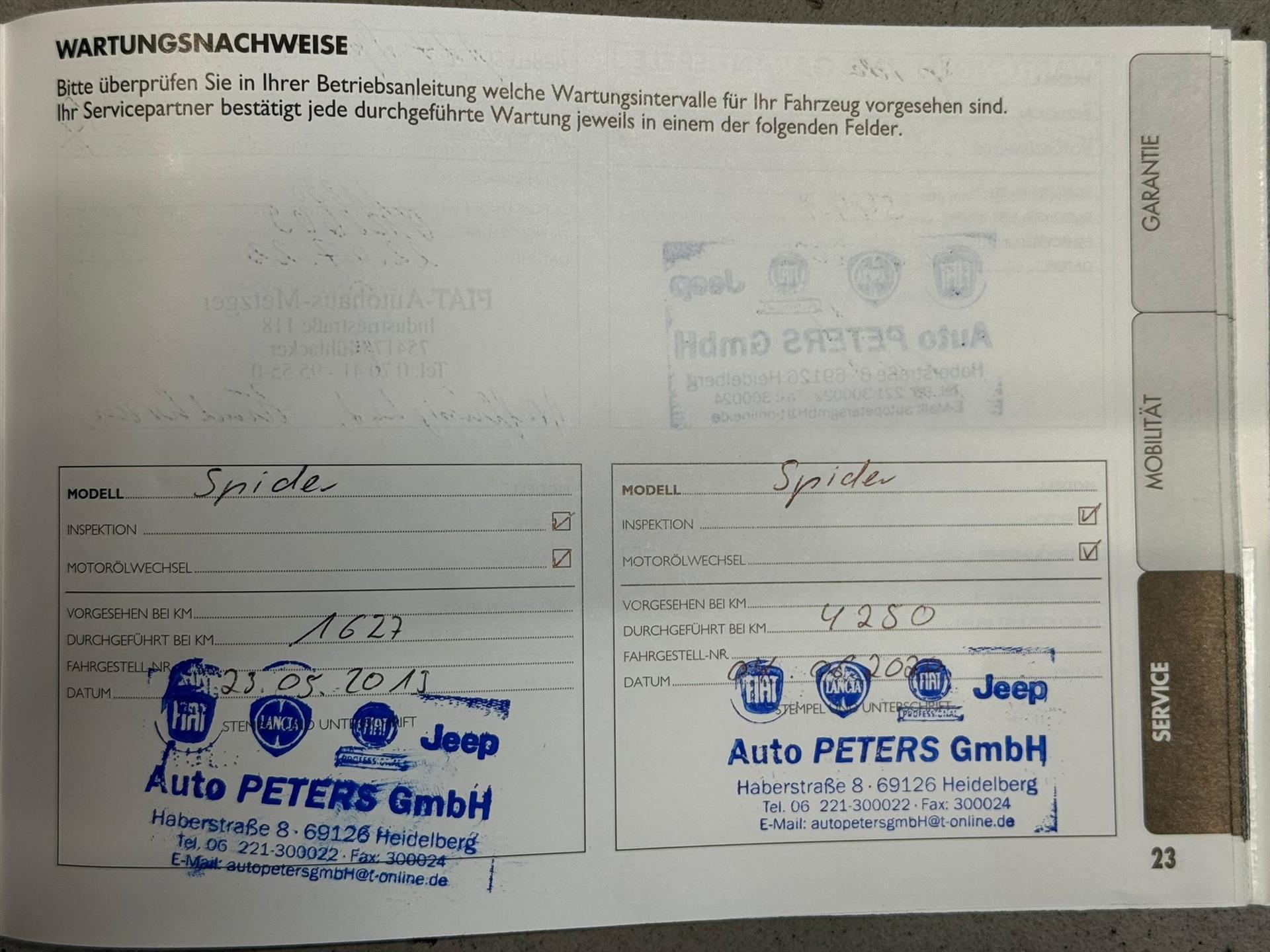 Een van origine Duits geleverd exemplaar. In dit geval was Fiat dealer Auto Peters GmbH te Heidelberg de leverende dealer aan de eerste eigenaar. Het onderhoud verliep correct en op tijd ondanks dat er door de eerste eigenaar amper met de 124 Spider gereden werd (in mei 2021 gaf de teller een magere 5500km aan). Ook zijn alle beurten netjes en correct afgestempeld in het serviceboekje alsmede alle documenten van het gepleegde onderhoud present. Onderhouden bij: 1627km , 4250km , 5441km , 11890km en 18988km. De auto werd eerst onderhouden door de Fiat dealer te Heidelberg en daarna de Fiat dealer te Muhlacker. Belangrijk voor u te weten is dat deze auto is voorzien van distributie riem welke natuurlijk qua kilometers nog lang niet toe was aan zijn interval , echter wel aan het aantal jaren. De distributie set is reeds vervangen bij de laatst uitgevoerde servicebeurt in juni 2024. De auto is nu afkomstig van eigenaar nummer “2” die de auto ook voor erbij had. Wij bieden u deze Fiat aan geheel rijklaar inclusief kleine service , Nederlandse registratie , geldige apk tot februari 2027 en Autotrust garantie pakket.