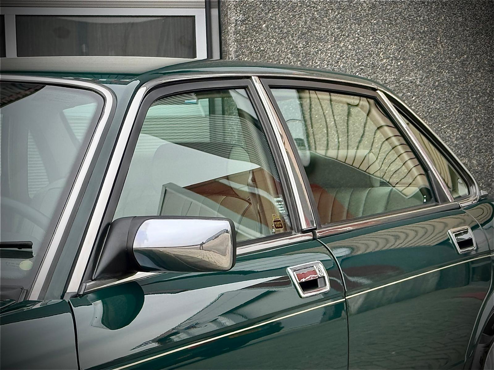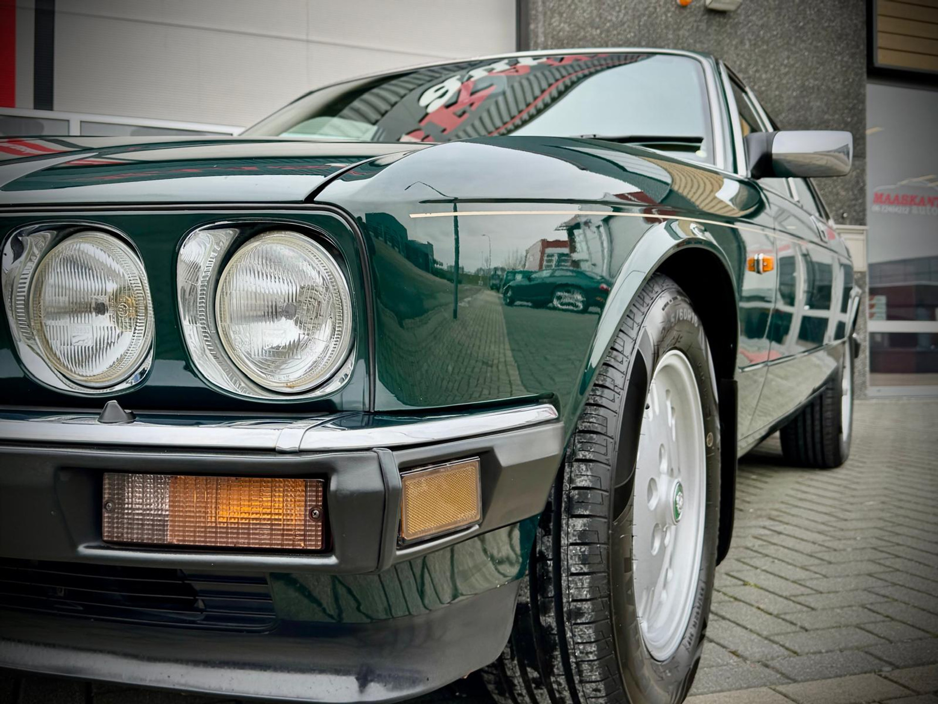 Een auto die de tand des tijds prima doorstaan heeft. Geen nieuwstaat maar een zeer goede echte staat zonder kant tekeningen. De auto staat voor een groot gedeelte nog in originele lak (bijzonder voor een Engelse auto uit dit tijdperk). Wij hebben optisch de auto laten detailleren waardoor ze een mooie diepe glans heeft en deze is beschermd met glascoating en dit geeft een prachtig voorkomen! Al het glas en lijsten zijn nog zeer netjes en origineel. Koplampsproeiers zijn tevens present (die ontbreken vaak). De achterlichten zijn ook nog netjes en zonder scheuren. Wij hebben de unieke Kiwi velgen laten coaten voor de puntjes op de i met daaromheen nieuwe banden. Het chroomwerk verkeert in algeheel nette staat (ook dat zien we vaak anders op de Xj40 en kan ter vervanging een kostbare aangelegenheid zijn). De onderzijde is nog geheel origineel en vanaf nieuw in roest preventie! Dus geen dichtgesmeerde zaken! Zelden zagen we een Xj40 die er zo correct en origineel uitzag. De motorruimte is geheel gedetailleerd tot in detail en ziet er uit om door een ringetje te halen. De kofferbak oogt netjes , roestvrij en is compleet met orgineel reservewiel , krik en natuurlijk een toolset is present! Het interieur oogt ultiem! Ongelooflijk hoe goed het interieur nog is. Het hangende hemeltje werd recent aangepakt , ook hier geen opmerkingen. Het houtwerk , vaak een bekend probleem is nog origineel en zeer netjes. Kortom een fraaie Xj40 zoals je ze nog zelden ziet. Bij binnenkomst hebben wij de Jaguar laten preparen door niemand minder dan Classic Paradise te Nederhemert. Inzichtelijk in foto reportage wat er recent gedaan is. Deze Xj40 staat geheel geprepareerd klaar.