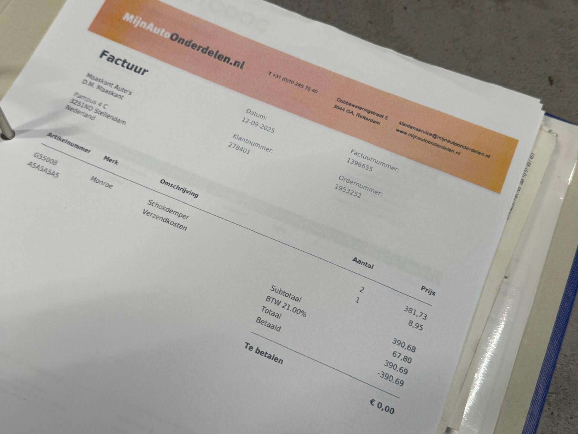 Maaskant Auto's zal je aanvraag spoedig beantwoorden.