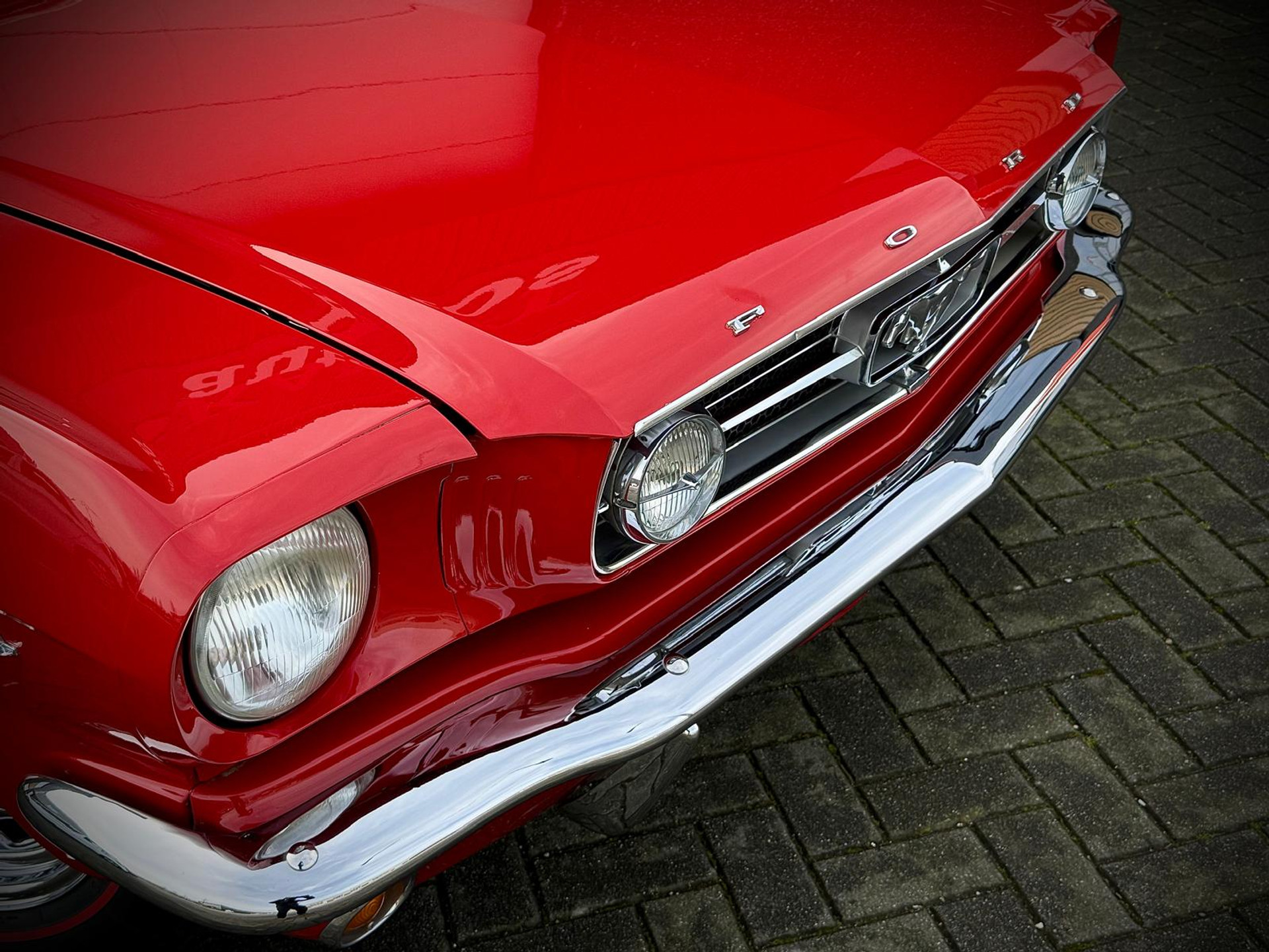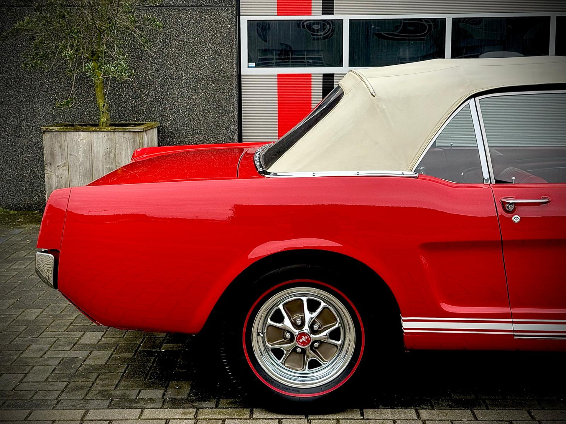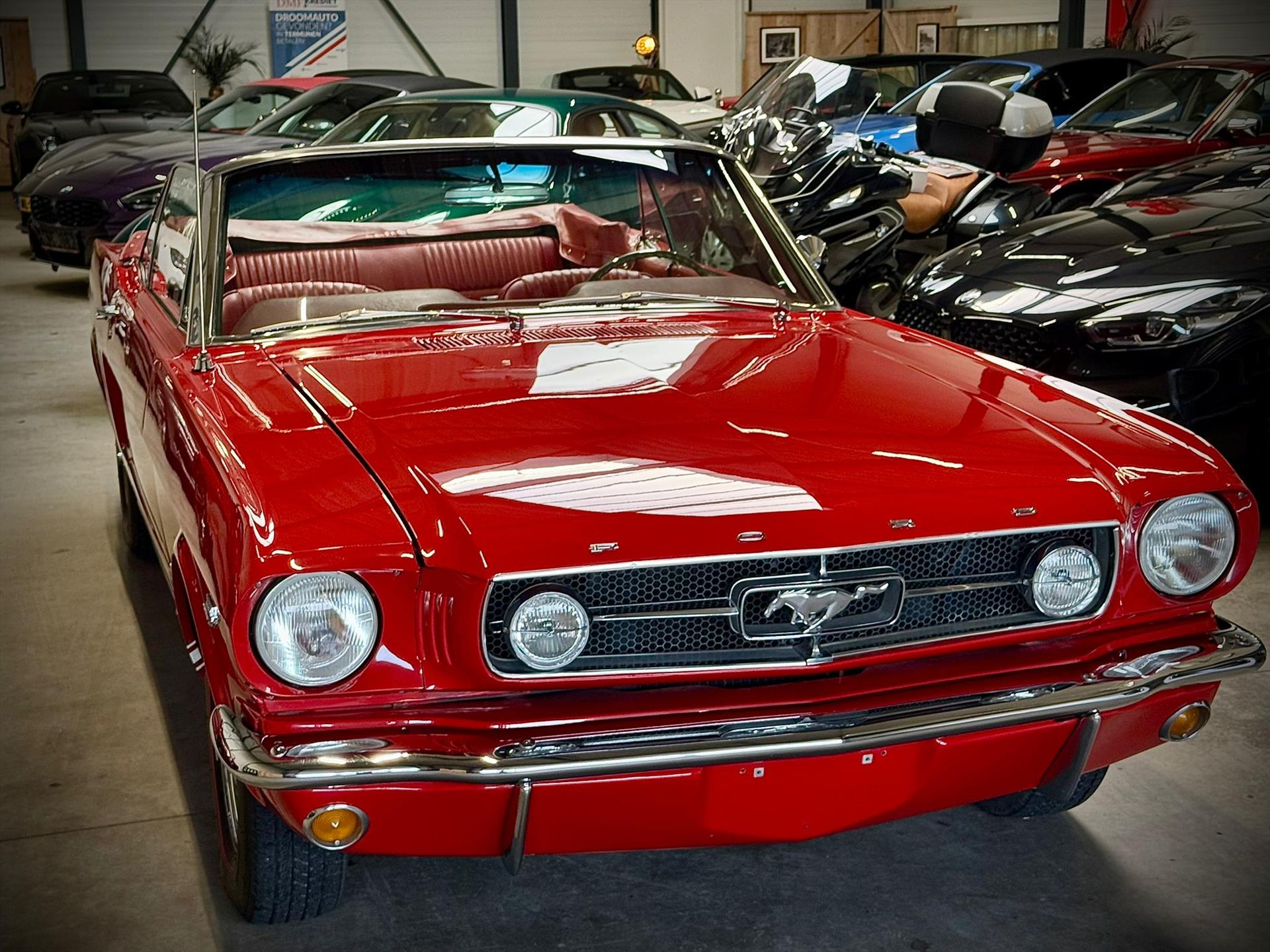 Zeer bijzonder icoon , deze Ford Mustang GT van bouwjaar 1965 in authentieke en periode getrouwe staat met eigentijdse patina. De oorsprong van deze auto was ooit een K-code Coupé dit betreft een Cabriolet conversie met authentieke details. Zeer unieke Mustang met 289 V8 K-code motor met maarliefst 271pk gekoppeld aan een 4-bak handgeschakelde transmissie. Uitgevoerd in waanzinnige kleurstelling van: Rood exterieur , rood "pony" interieur en Witte softtop. In technisch zeer goede , betrouwbare conditie. Zonder achterstallig heden. Recent geleden voorzien van nieuwe draagarmen. De uitrusting omvat: Gt versie , Vinyl interieur , Houten stuurwiel , Veiligheidsgordels , Rally pack (toerenteller en klok) , Radio met antenne , Getinte ramen , Linker buitenspiegel , Chromen koplampringen , Handmatig bedienbare softtop met persenning present , Banden met rode streep , Edelbrock inlaatspruitstuk , Holley carburateur , Open luchtfilter en meer...